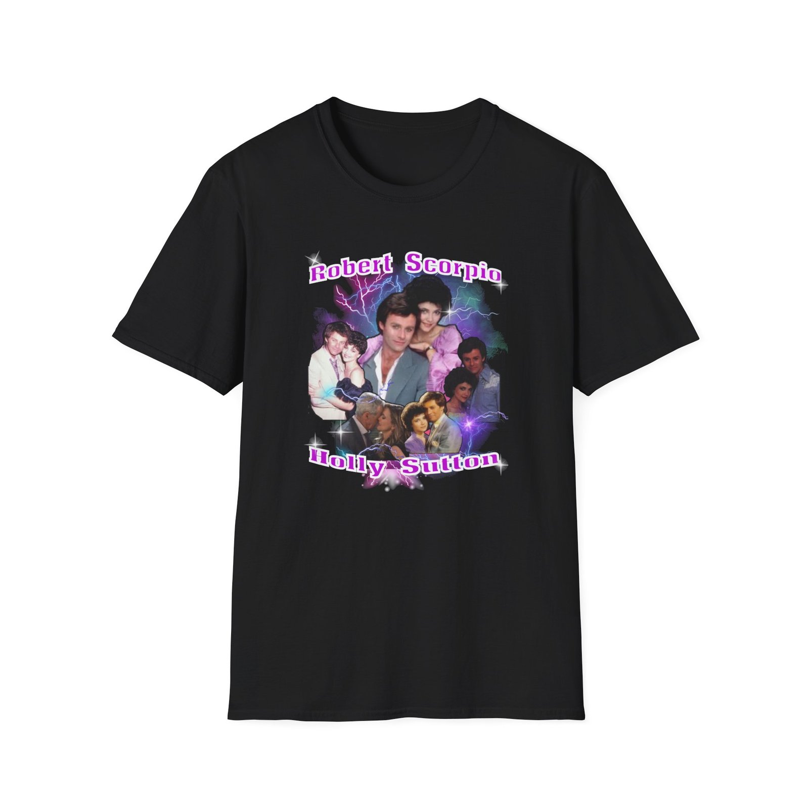 Wear a piece of soap opera history with the Robert Scorpio & Holly Sutton  T-Shirt—a must-have for any General Hospital fan.